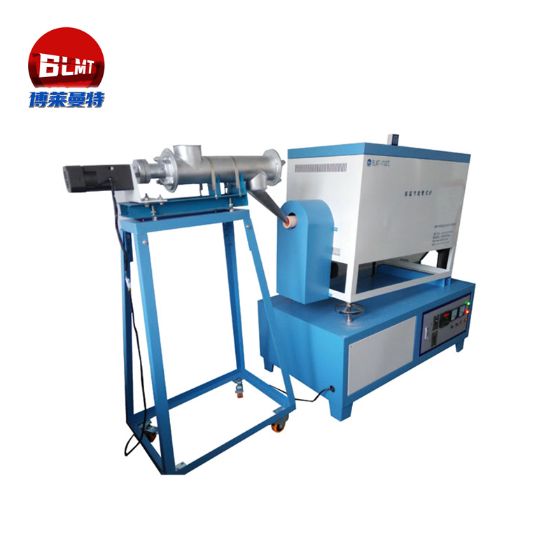 可傾斜旋轉式管式爐型號:BLMT-GX,制作成可調性傾斜角度,由電動或液壓支撐調節角度(整個爐體的重量來選擇電動或液壓調節)通過調節傾斜節度來調節出料速度。爐管傳動安裝在進口處,由齒輪、減速機、電機,變頻器構成一個傳動系統,來帶動爐管的旋轉,旋轉的速度可以調節。并通過調節速度來調節出料速度,旋轉式管式爐采用螺旋式進料方式以減速機、電機、調速系統來控制與調整螺旋的旋轉速度,以達到物料進入的速度。爐體做成可分拆形的,上下分拆,進出口系統可拆,全部現在組裝,方便客戶搬運。爐膛采用氧化鋁陶瓷纖維板,防止熱量外溢,陶瓷纖維板可以使電爐升溫更快、保溫效果更顯著從而達到節能。